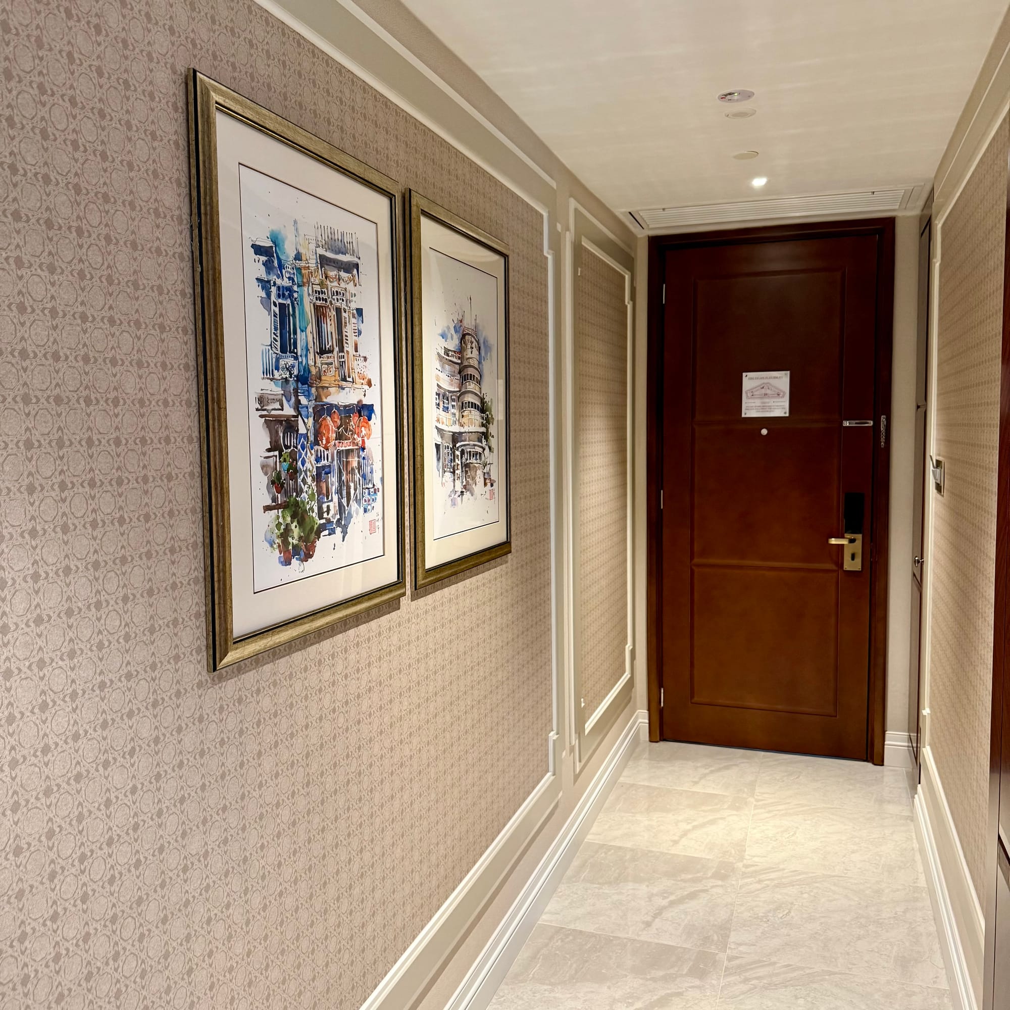 We were escorted up by the receptionist and first impressions were promising: the Level 8 corridor outside the rooms has a fresh coat of paint, modern carpeting and framed architectural prints borrowed from the National Heritage Board. It feels like the “renovated wing” of a classic hotel – in a good way.