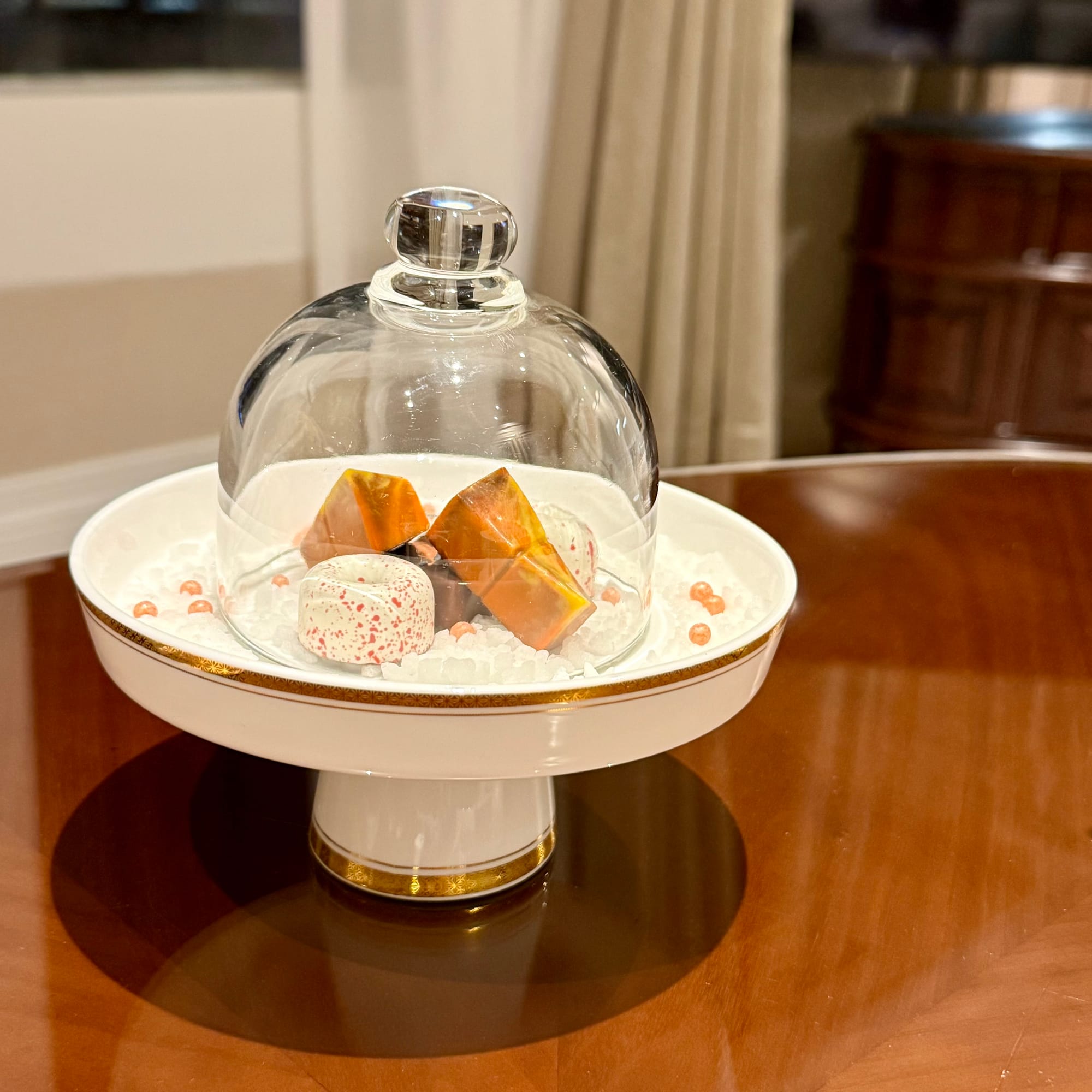 Service details were thoughtful: a fruit platter appeared in the late afternoon, turndown staff rearranged slippers by the bedside and pre-folded the duvet for easy access, and a plate of five genuinely top-notch chocolate pralines was left on the coffee table. These little touches go a long way in making the suite feel genuinely luxurious.